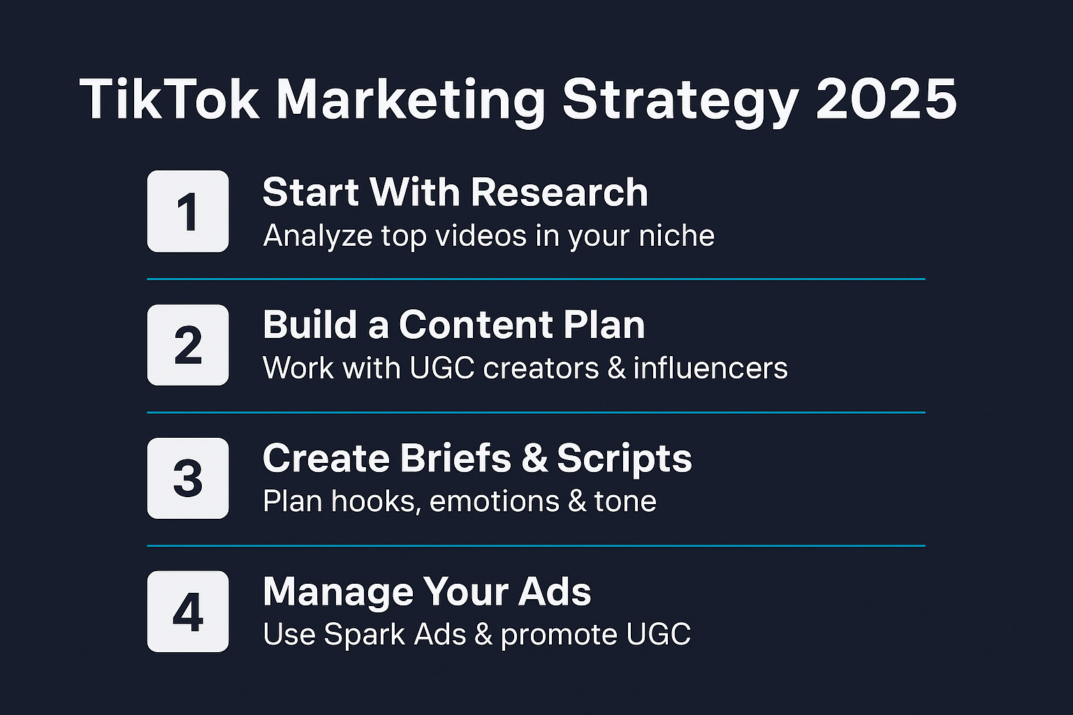 I hope this article gave you clarity on how to build a winning TikTok marketing strategy in 2025. Remember: it all starts with research, builds into a content plan, and is amplified through authentic UGC + ads.